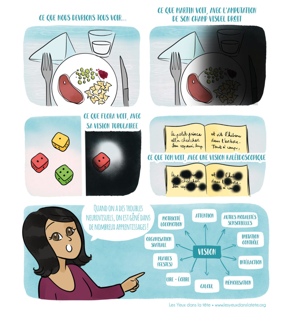 Ainsi, une lésion cérébrale peut causer des difficultés majeures à percevoir une scène alors que nos yeux, eux, sont parfaitement sains. On parle dans ce cas de troubles neurovisuels.